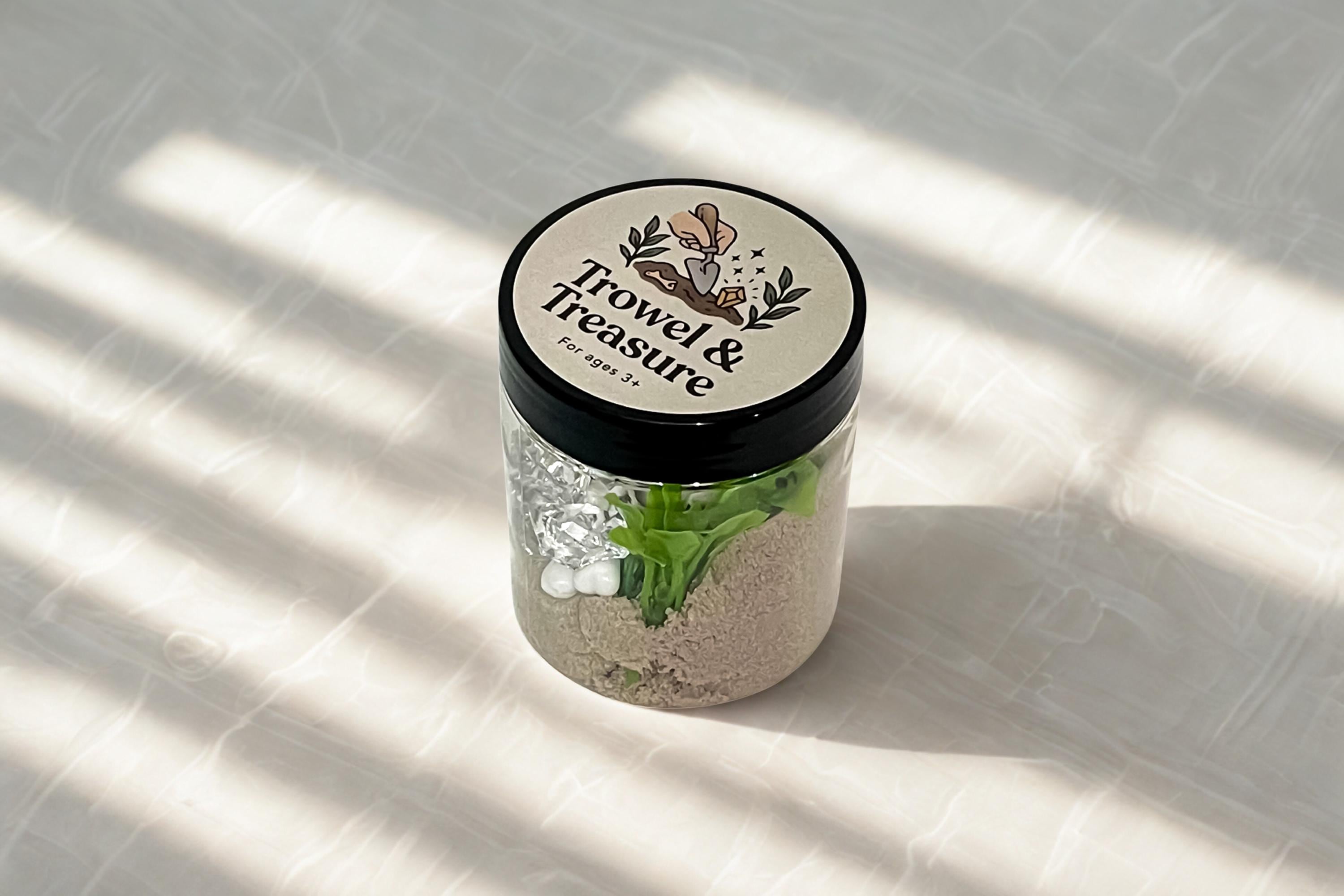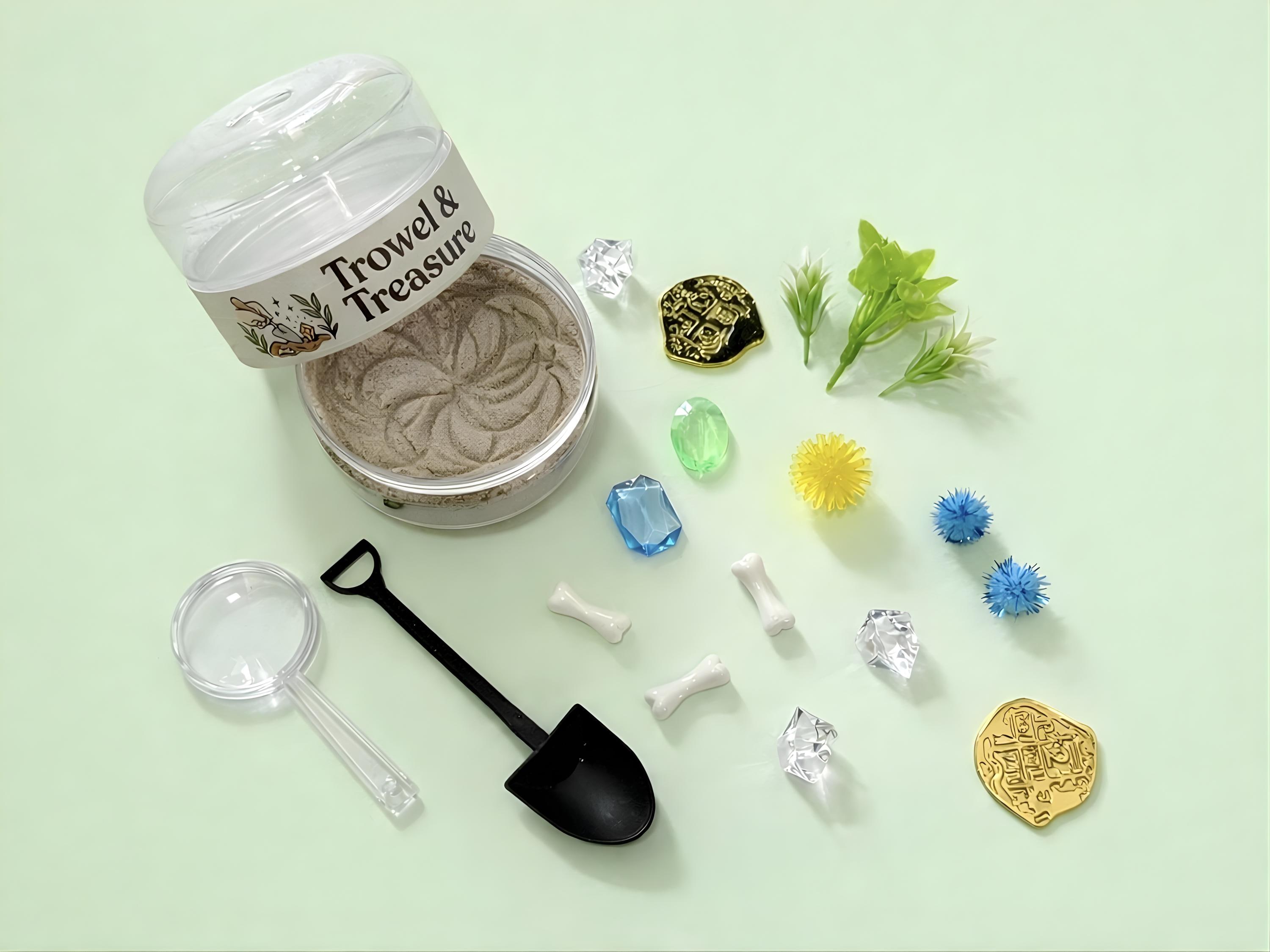 Perfect for ages 3+, this portable excavation kit encourages imaginative play and STEM learning. Every jar is slightly different, making each dig a unique adventure.