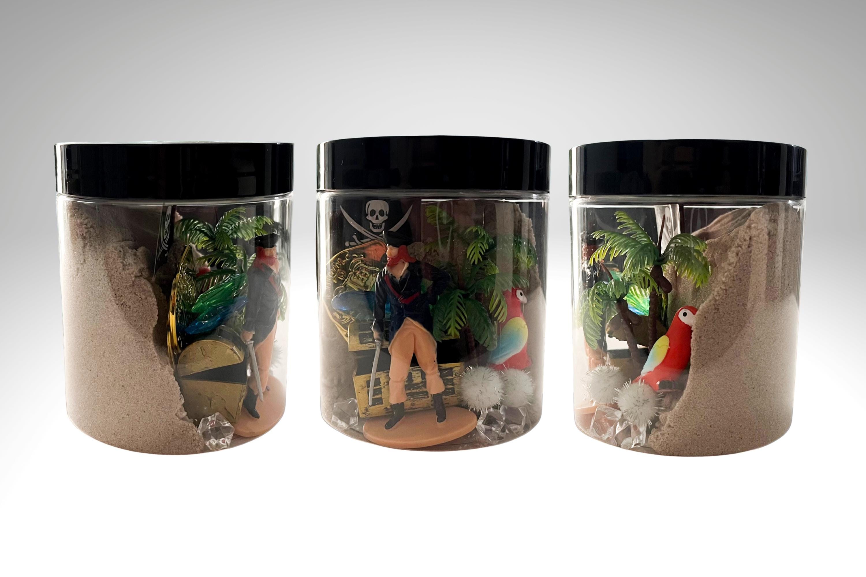 Each 16oz jar is packed with kinetic sand and themed play items to spark imagination, encourage sensory play, and support early learning. Perfect for little buccaneers!